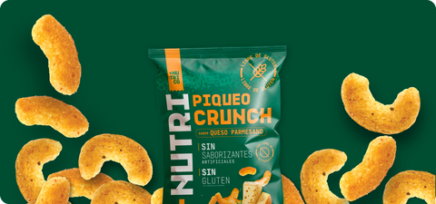 Piqueos Crunch Queso Parmesano: Snacks crujientes a base de quinua, arroz, kiwicha y yuca, con un irresistible sabor queso parmesano. Sin colesterol y con el toque perfecto de sal. El antojo saludable que no te juzga.