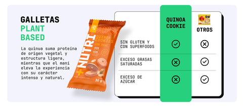 Pensada para quienes buscan ingredientes funcionales, con un dorado perfecto y trozos visibles de maní. Es una galleta equilibrada, nada empalagosa y con mordida firme. No es un snack dulce de paso: es uno que te acompaña y te sostiene.