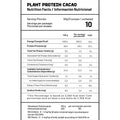 Sabor Cacao: Proteína aislada de arveja, polvo de cacao, arroz extruido, kiwicha extruida, chía extruida, harina de plátano, canela, estabilizante (SIN 415), aroma vainilla natural, edulcorante (SIN 960a).